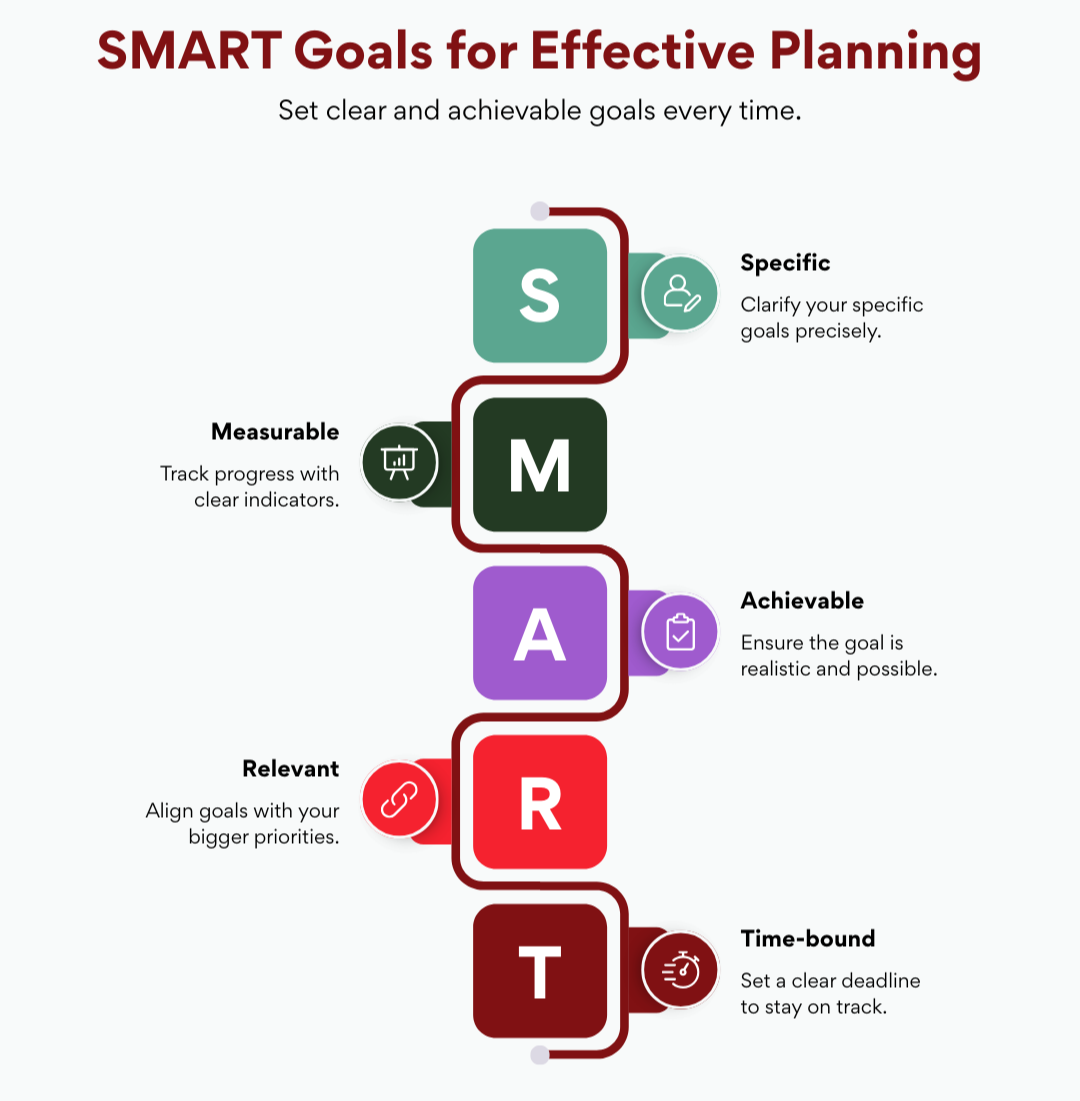 SMART goals are a structured and effective way to set and achieve objectives by ensuring they are clear, actionable, and measurable. SMART stands for: